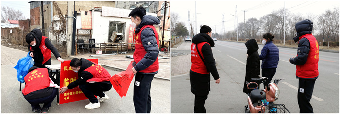 民主街道的工作人員為志愿者們及時送餐,保證大家吃上一口熱乎飯;工業公司黨支部為志愿者們準備了手套、暖寶寶、口罩等物品,滿足大家御寒需要。