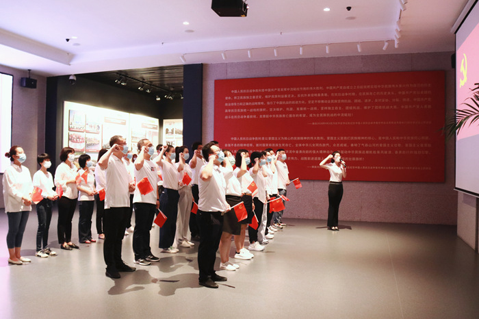 在展館內,氣氛嚴肅莊重,全體黨員整齊列隊,高舉右拳,面向鮮紅的黨旗,以昂揚的斗志和飽滿的熱情,鏗鏘有力地宣讀入黨誓詞,發出錚錚誓言。每一位黨員的心靈受到震撼和洗禮,更加堅定了為共產主義事業而奮斗的理想信念。