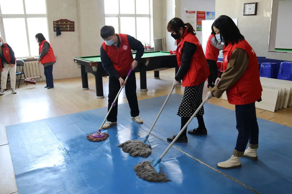 此次活動圍繞清掃社區居民活動室展開。下午1點30分,航空集團25名黨員及入黨積極分子準時到達美地社區,大家迅速穿上醒目的志愿者紅馬甲,分工合作起來。活動現場,志愿者們積極投入到清掃社區活動室地面、清除衛生死角、擦拭公共展板等工作中。此外黨員志愿者們在社區工作人員的帶領下,搬桌子、掛條幅、擺凳子,圓滿完成美地社區即將召開黨員大會的前期布置工作。